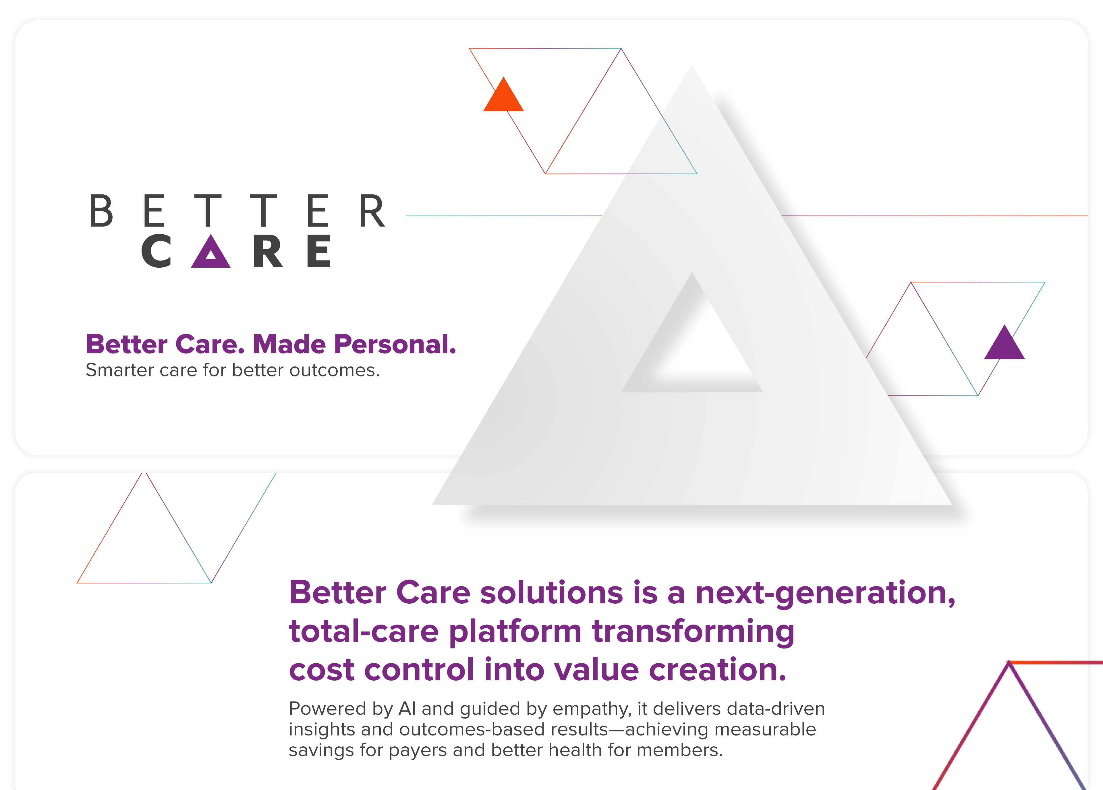 Better Care solutions is a next-generation, total-care platform transforming cost control into value creation.